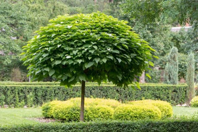 The green catalpa tree has turned